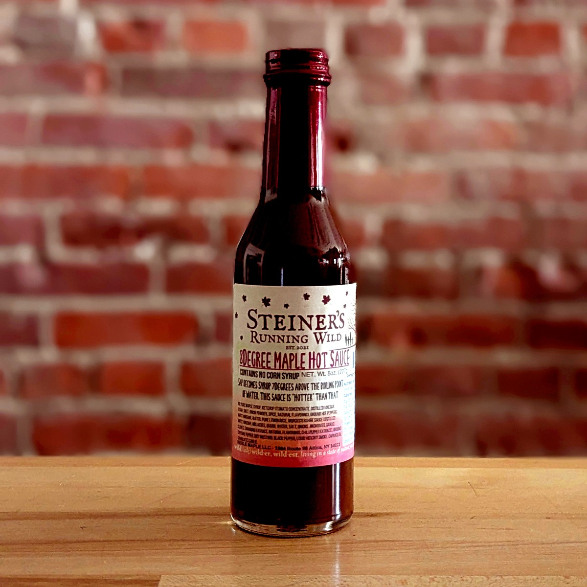 Hot sauce flavored with robust, dark, grade A NY maple syrup.