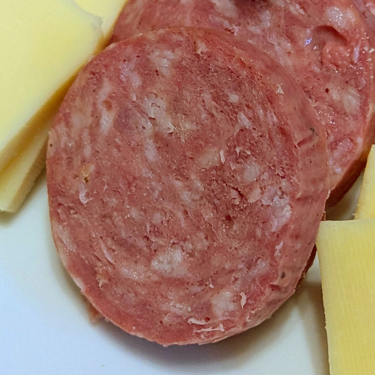 Old fashioned, wood smoked, hand-crafted summer sausage, made in St. Lawrence County, New York.