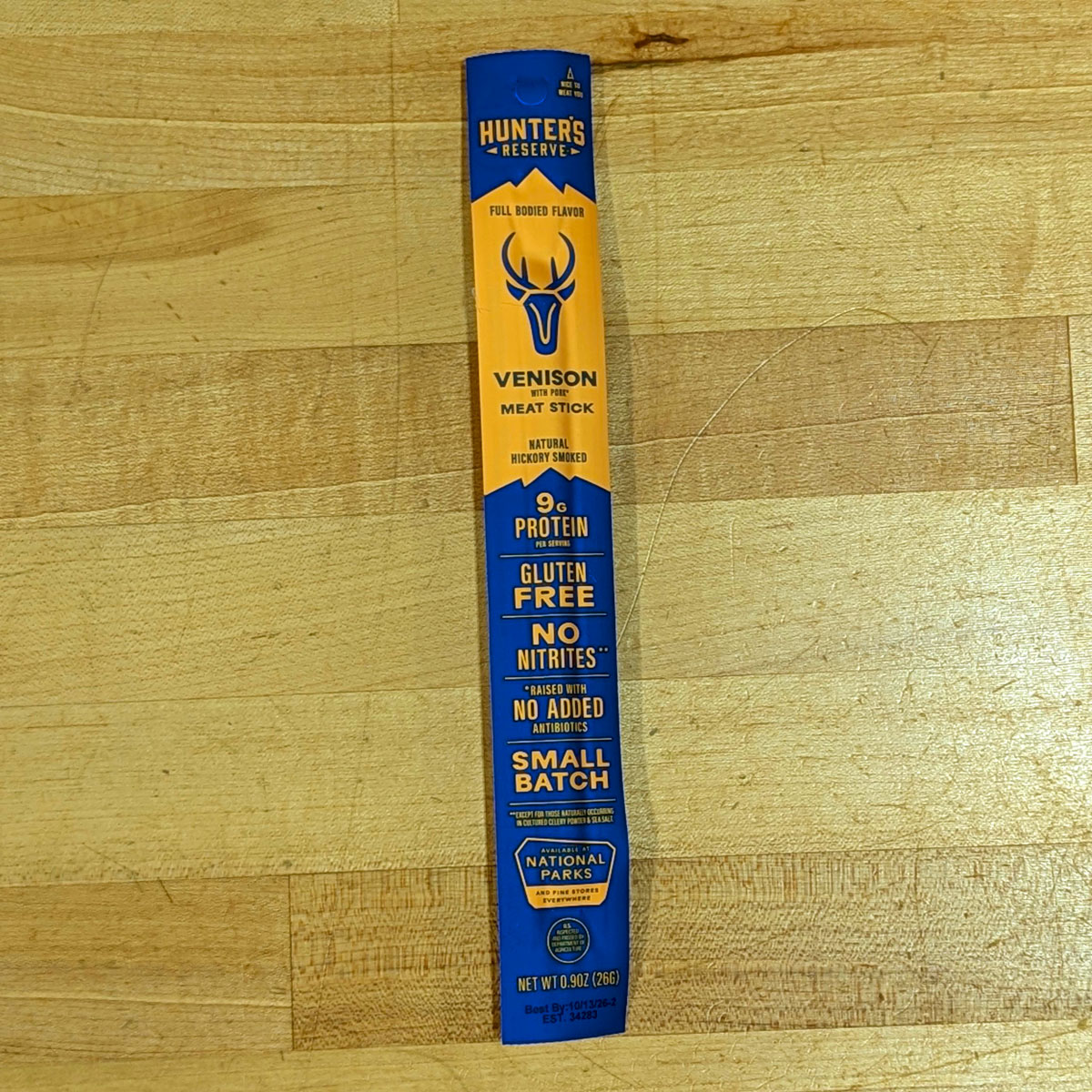 Venison meat stick with a savory, lightly peppered flavor profile.